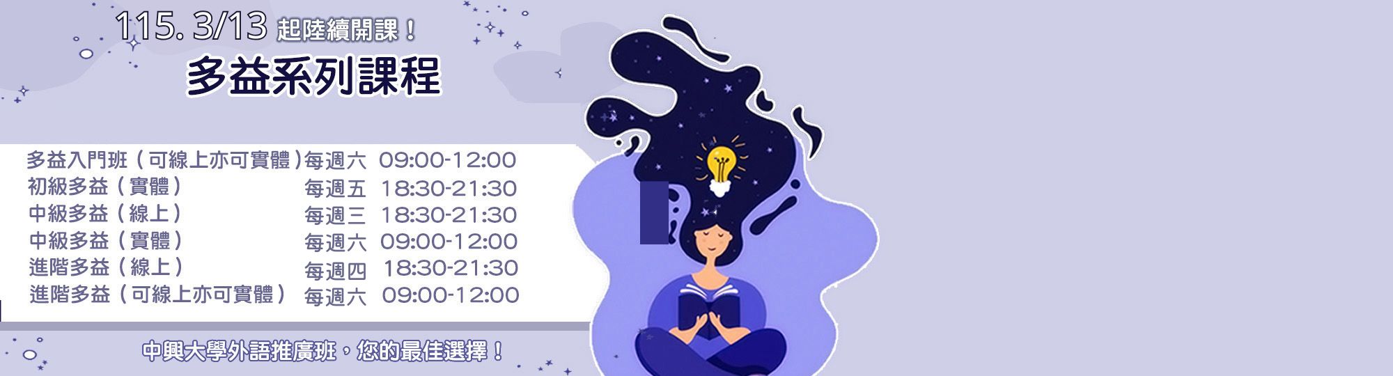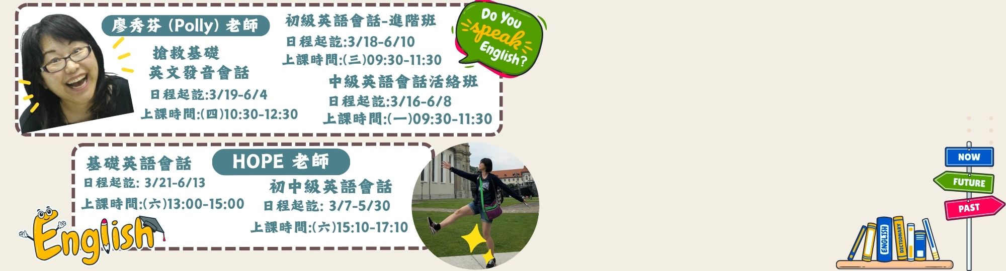 | 多益入門班 (實體+線上同步) | 招生中 | 03.21~06.13 | 每週六 09:00~12:00 | 36 | $6,200 | 報名 | |