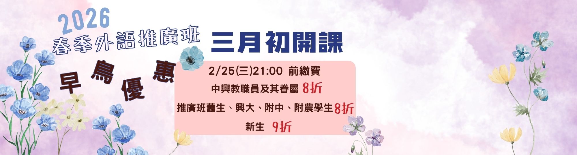 | 高階字彙閱讀(中) (實體+線上同步) | 招生中 | 03.18~06.10 | 每週三 18:30~21:30 | 36 | $6,600 | 報名 | |