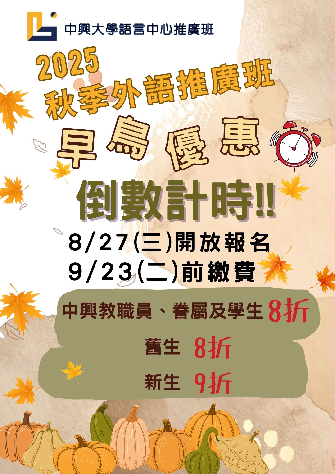 *語言中心2025秋季外語推廣班早鳥優惠報名中*
